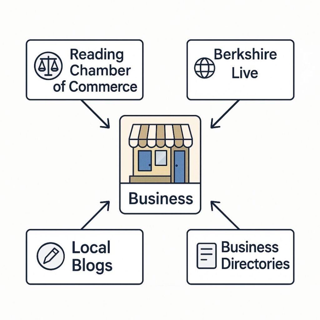 • Join the Reading Chamber of Commerce or business groups: Membership organisations often list their members on their sites. If you join the Reading Chamber of Commerce, networking groups, or trade associations in your industry, you will usually get a profile or mention on their website (with a link). This not only aids SEO but also helps real local customers find you through those platforms.